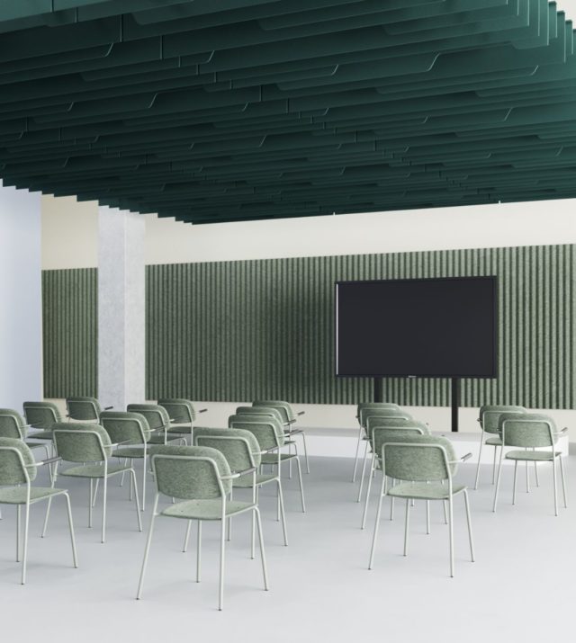 Een goede akoestiek hoeft niet ingewikkeld te zijn en daar zijn de akoestische baffles van ReFelt voor gemaakt. Ze zijn heel makkelijk te installeren en zullen elke ruimte akoestisch verbeteren. De afwisselende vormen in de Akoestische Baffles PET Felt Ambigu creëren een intrigerend patroon, waardoor het een kunstwerk voor elke werkruimte wordt.