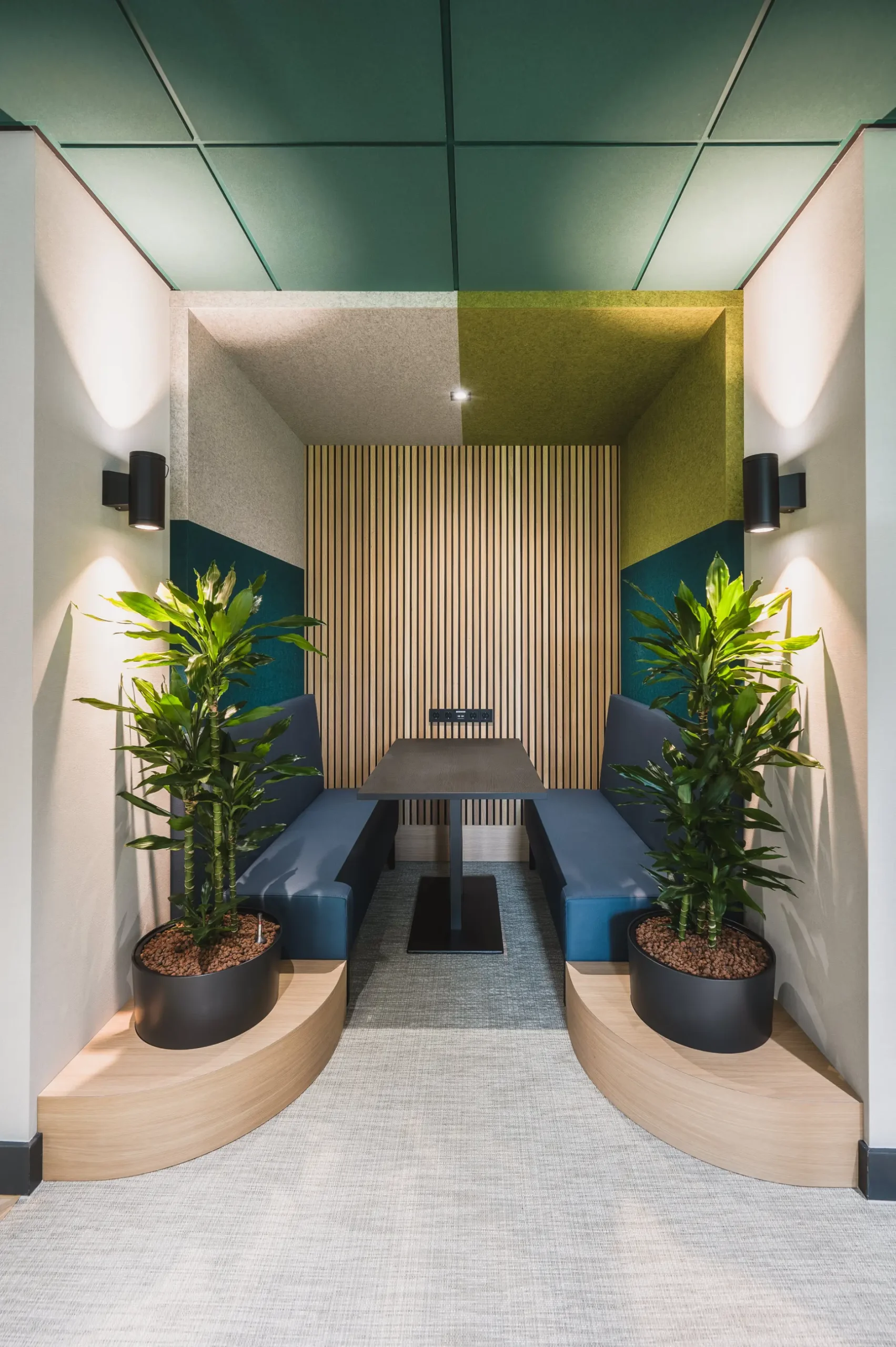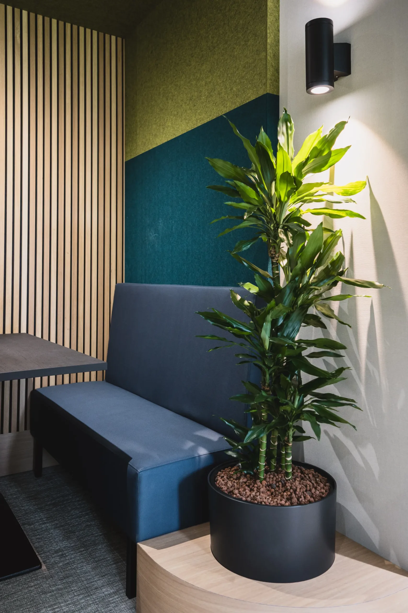 Het ontwerp van twee flexibele overlegunits en werkplekken bieden extra privacy. Daarom was het maatwerk van ReFelt een perfecte toevoeging. De Melange 12 mm PET Felt Panelen hebben een uitstekende akoestische werking: ongewenst geluid wordt hierdoor gedempt. De panelen zijn uitgevoerd in de kleuren die ook in de andere ruimtes van het gebouw terugkomen. Bovendien zijn ze volledig op maat gemaakt voor een precieze pasvorm in de twee nissen.
