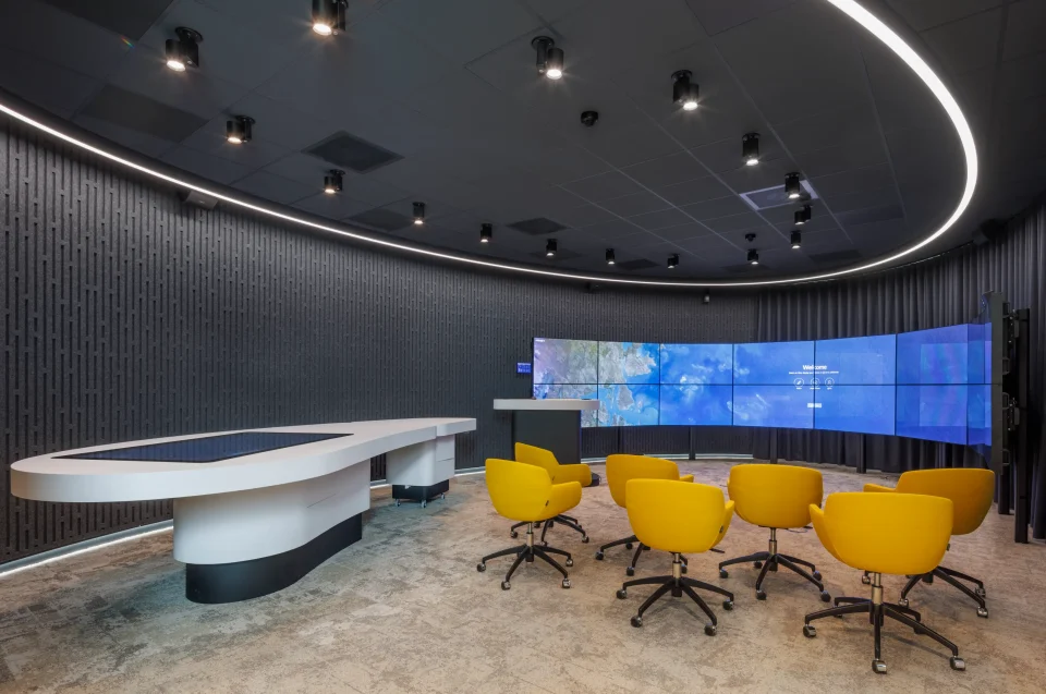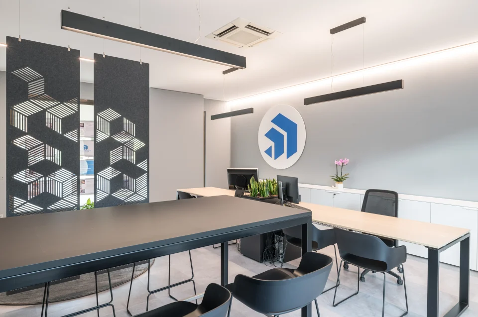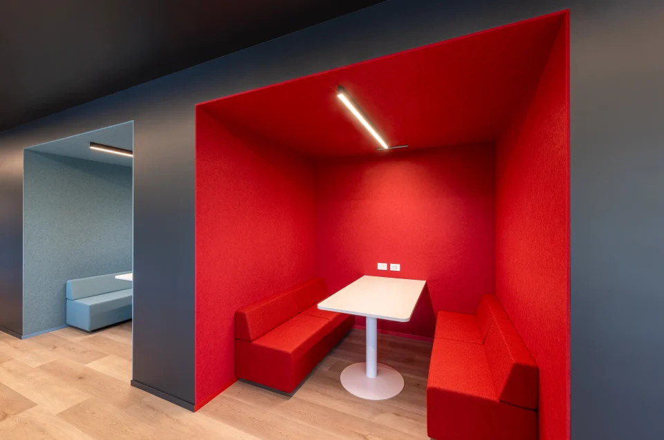 Een evenwichtig ontwerp dat rust en akoestisch comfort brengt in een moderne IT-werkomgeving.