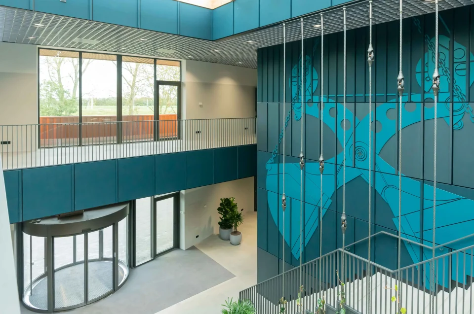 Het kantoor van Nemag in Zierikzee is ontworpen om verbinding en innovatie te bevorderen, en tegelijkertijd zijn eeuwenlange erfenis op het gebied van techniek te representeren.