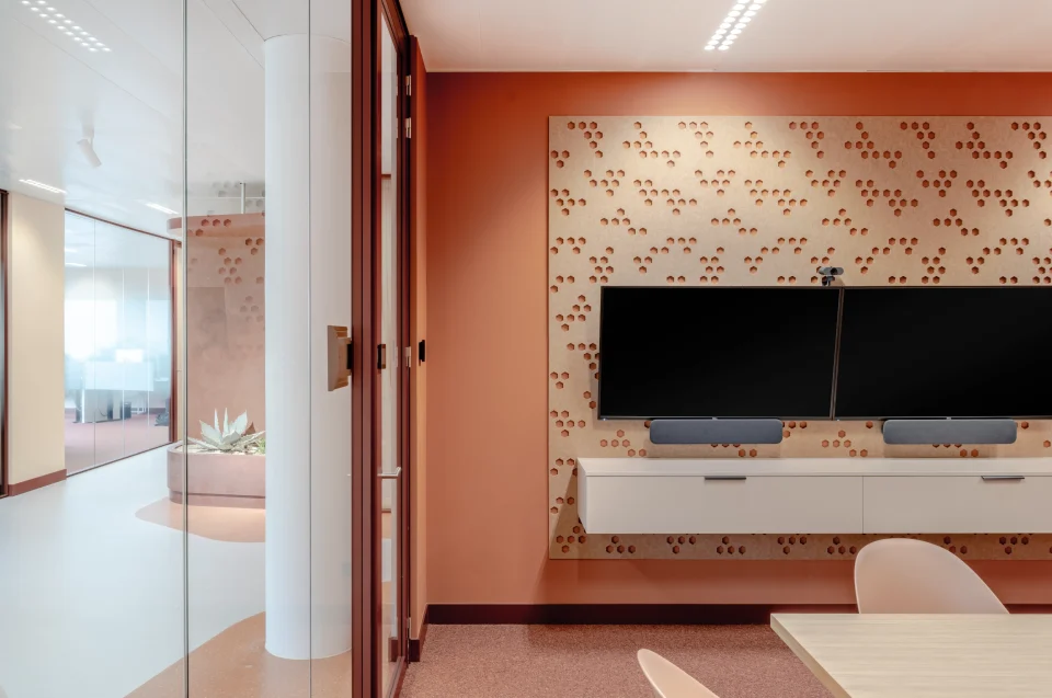 RF Studio in Parijs heeft het kantoor van een adviesbureau geüpgraded door middel van aanpasbare PET felt panelen voor een rustige en esthetisch aangename werkruimte.