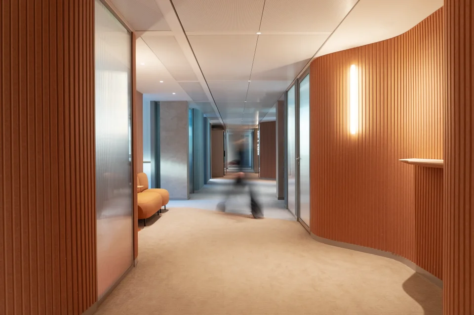Dit advocatenkantoor werd volledig herontworpen met een focus op rust, akoestiek en een comfortabele, efficiënte werkomgeving.