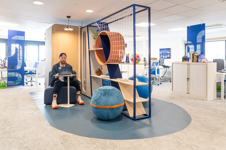 Tijdens de transformatie van het E-Gym hoofdkantoor werd een dynamische en inspirerende werkomgeving gecreëerd waar samenwerking, verbinding en merkidentiteit samenkomen.