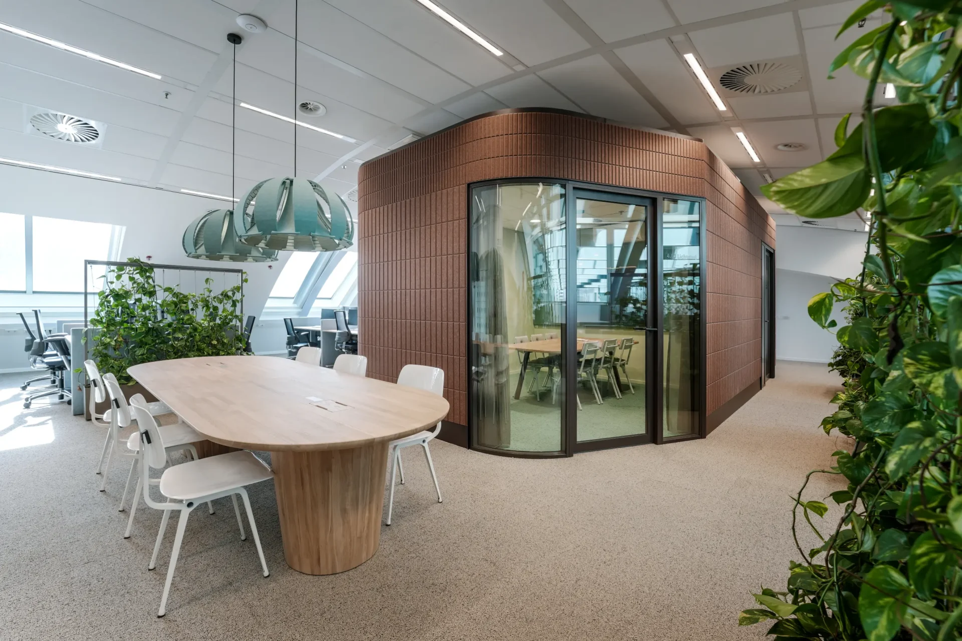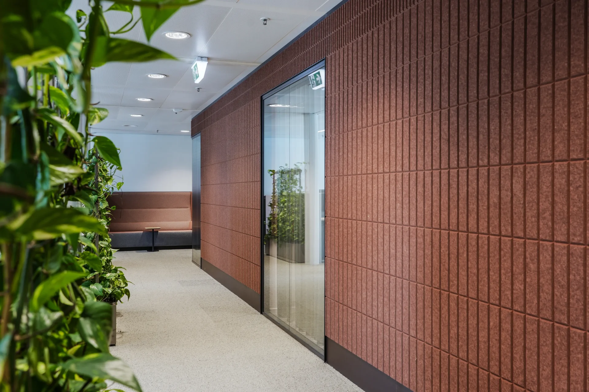 This structured geometry offers a balanced contrast to the softer elements that characterise the VGZ identity. Natural tones, curved glass panels and the presence of plants soften the strong architectural outlines, helping the spatial design reflect the organisation’s focus on people. The PET Felt panels form part of a wider material palette that supports both the acoustic and visual qualities of the interior, contributing to a workplace that feels both cohesive and comfortable in daily use.