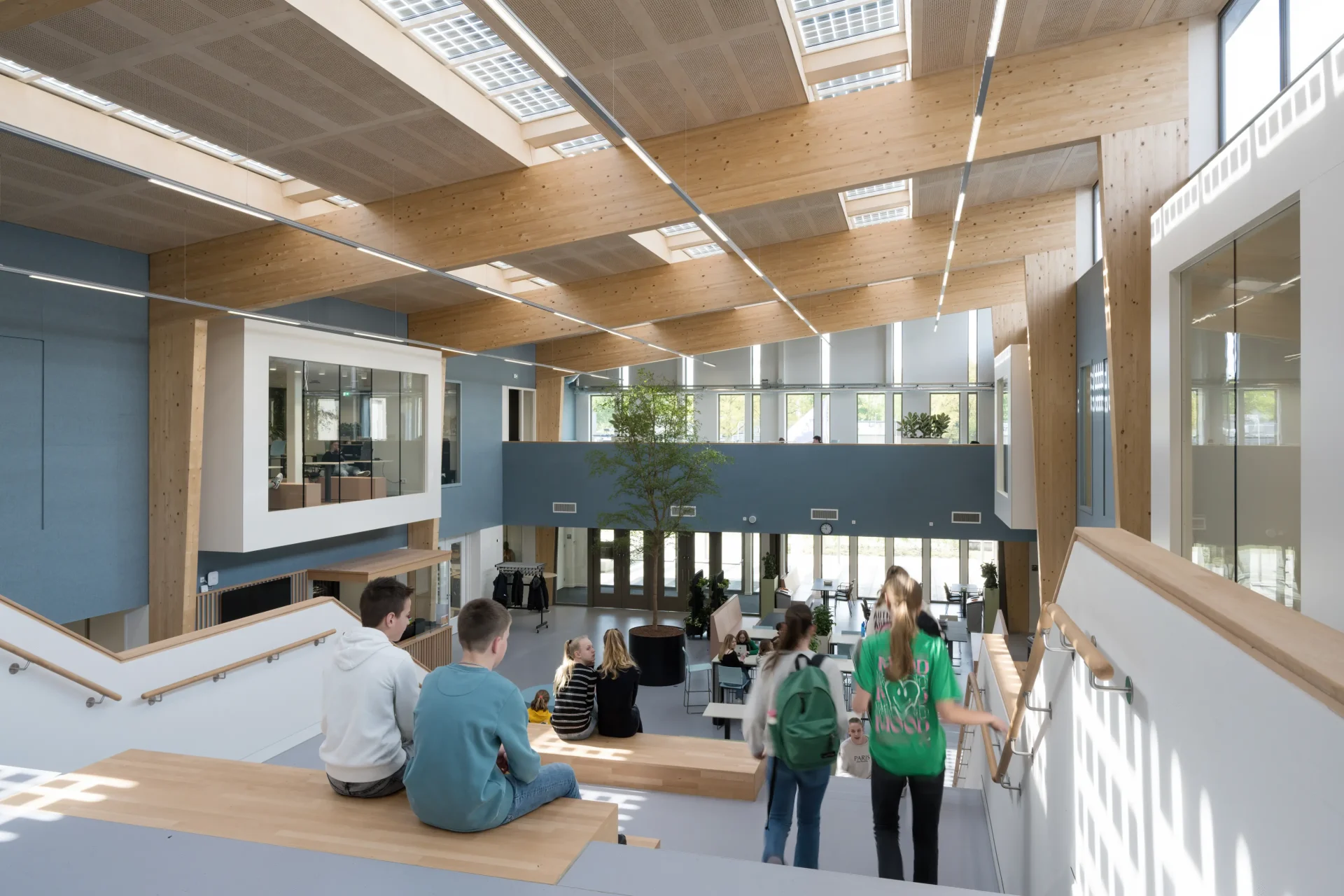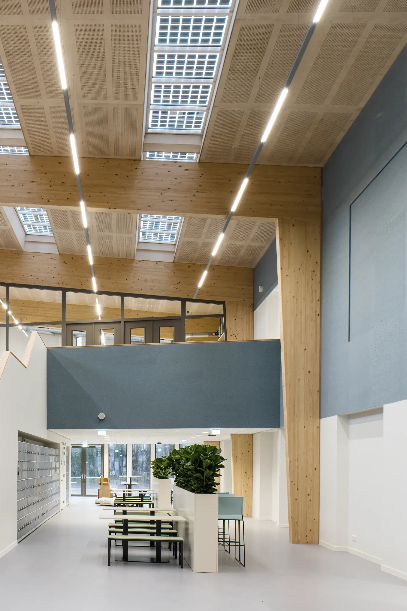 The panels align with the project’s vision because they are made from recycled plastic bottles. They provide a practical solution that combines functionality with sustainable design principles. Their neutral and timeless appearance allows them to integrate seamlessly into the space while maintaining long-term effectiveness. By incorporating materials like ReFelt’s panels, Staring College successfully integrates its educational objectives with its commitment to sustainability.